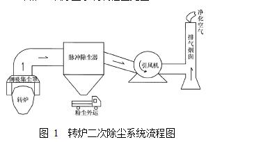 轉爐二次除塵系統(tǒng)流程圖見圖 1 。
